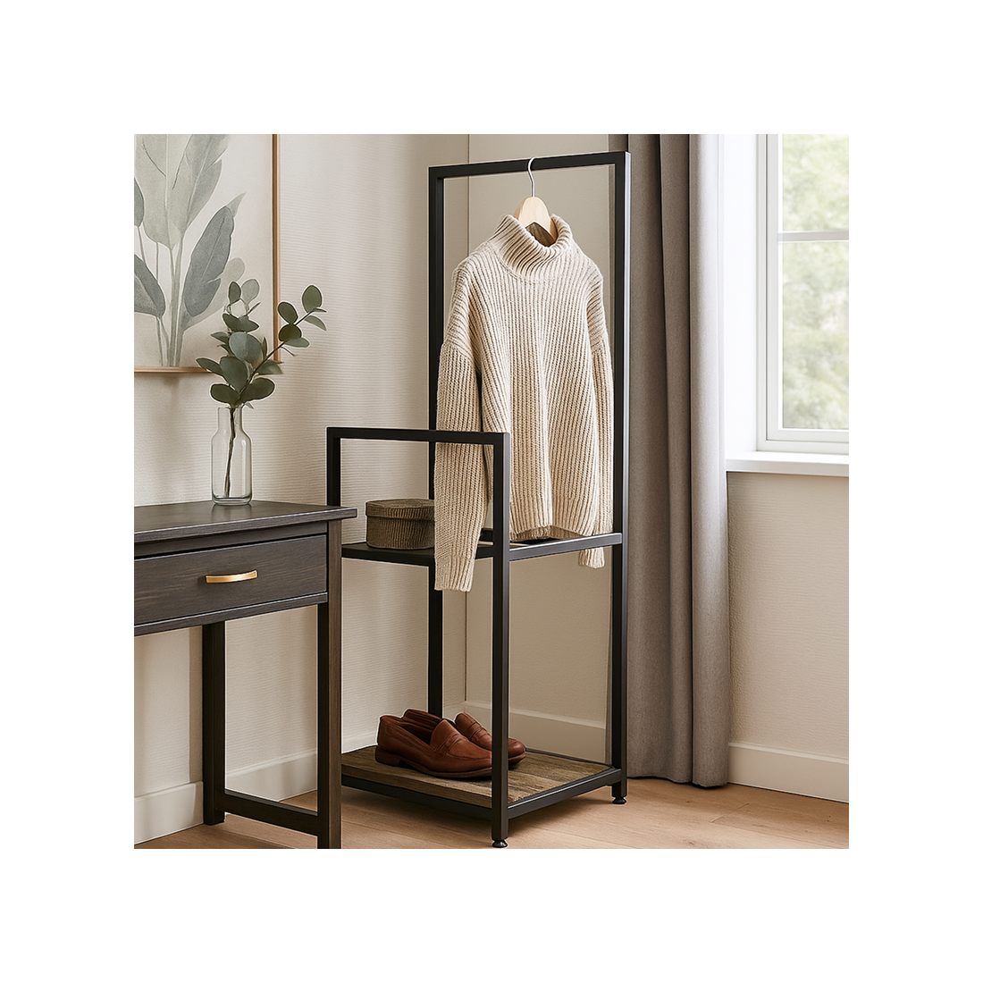 Вешалка напольная лофт Di Ferro ORGANIZZATTO 1010x250x450 Черная Дуб Тахо