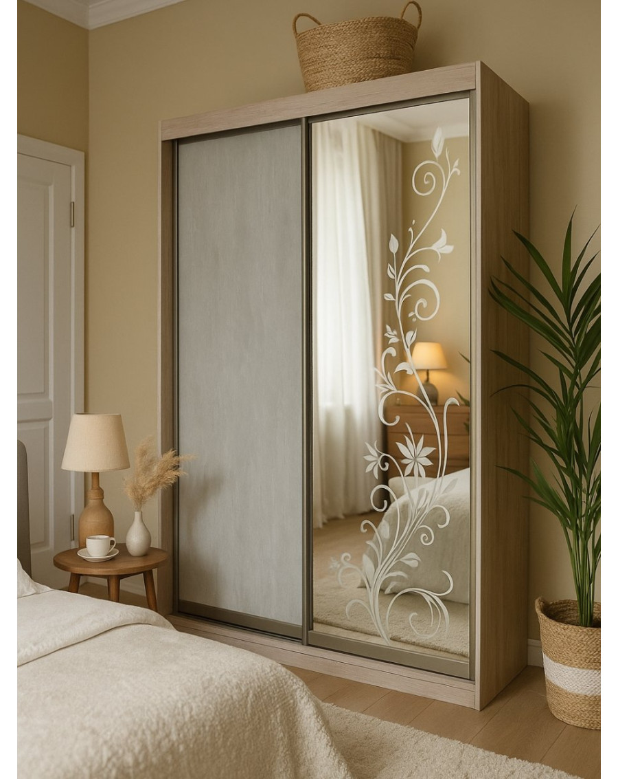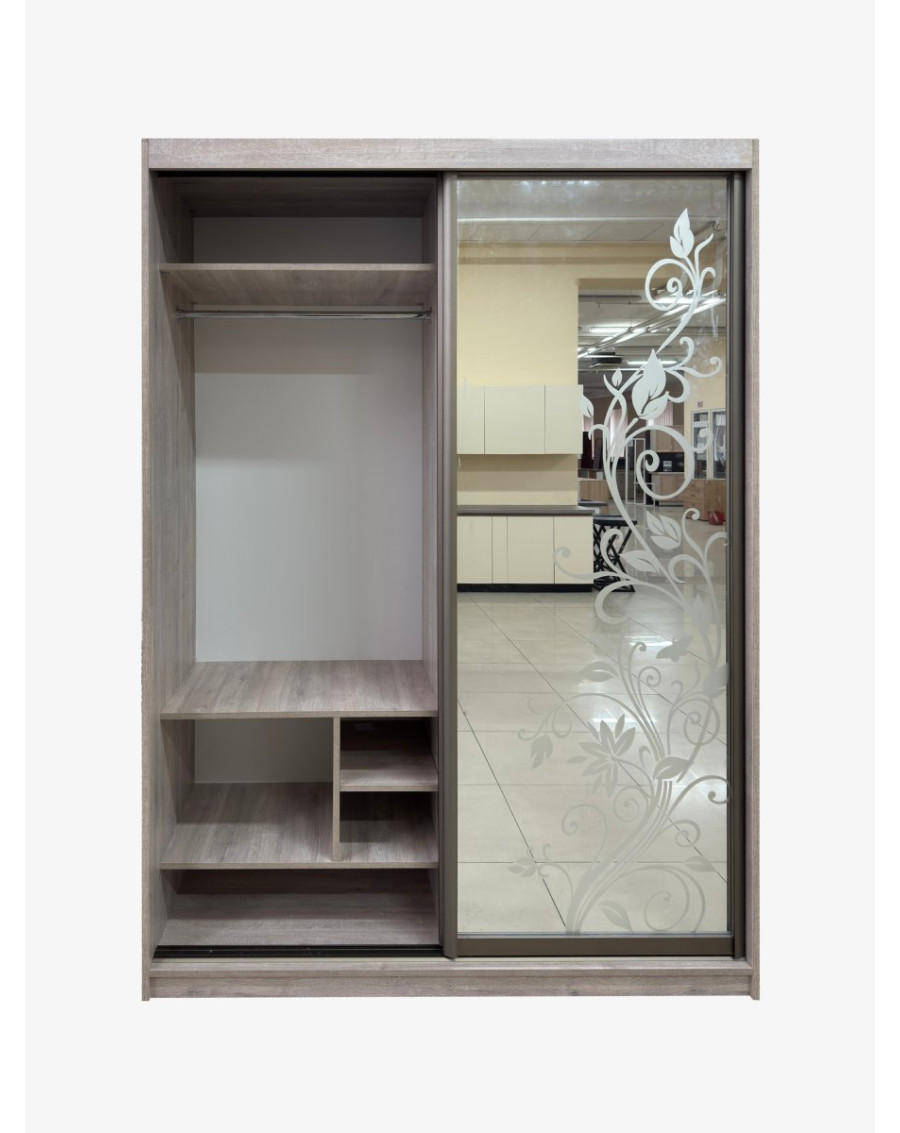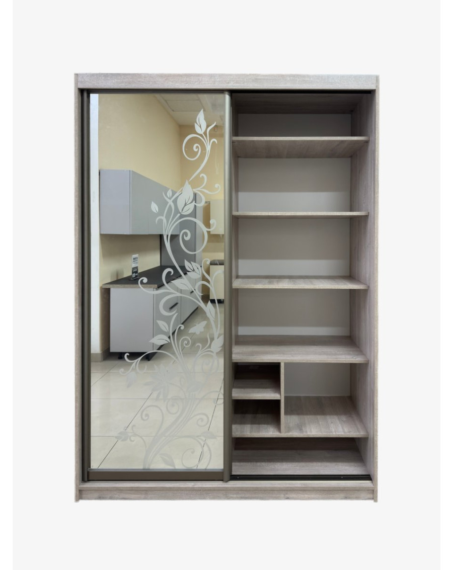 Привнесите теплоту и элегантность в свою комнату с этим шикарным шкафом-купе в темном ореховом оттенке. Зеркало добавляет функциональность, позволяя вам проверить свой образ перед выходом из дома. Организуйте свое пространство с удобством и стилем.