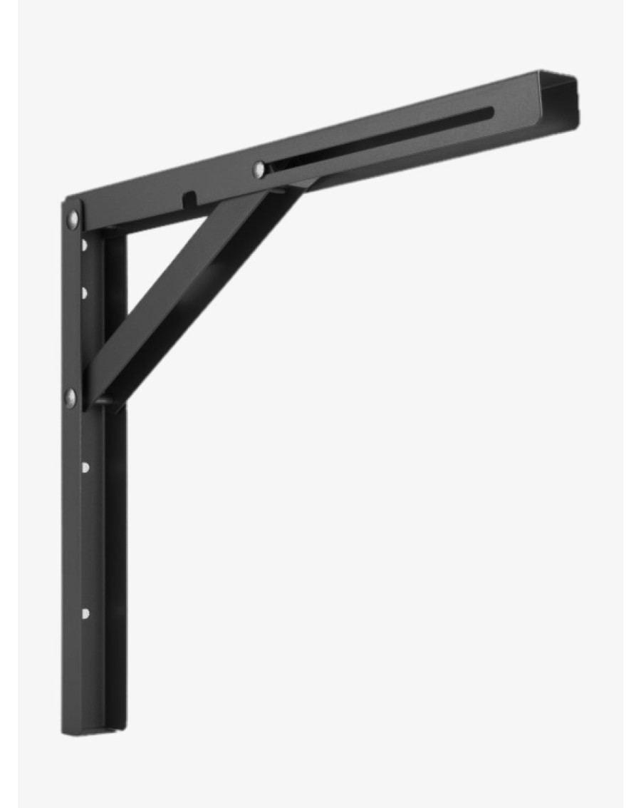 Благодаря встроенному фиксатору, полка или столешница надежно удерживается в горизонтальном положении, а при необходимости легко складывается, освобождая место. Такой тип кронштейнов идеально подходит для кухонь, мастерских, балконов, гаражей, офисов и коммерческих помещений.