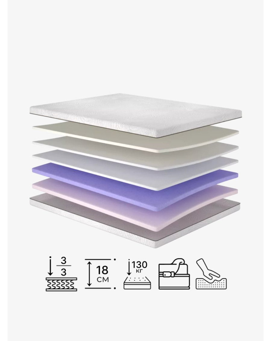 Чехол из стрейч-трикотажа с добавлением натурального льна приятен на ощупь, обладает гипоаллергенными свойствами и «дышит». Наличие молнии позволяет легко снимать и чистить его. Матрас выдерживает нагрузку до 130 кг и подходит для ежедневного использования.