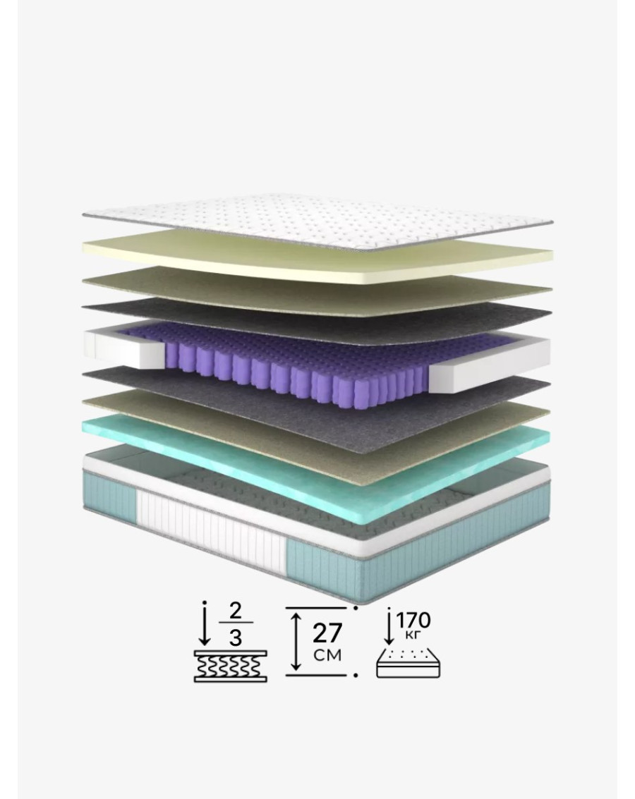 Матрас Stories от Matroluxe — двусторонняя модель средней жесткости (2/3), созданная для тех, кто ценит анатомическую поддержку и здоровый сон. В основе матраса — независимый пружинный блок iML® Pocket Spring Hard с шахматным расположением пружин, который повторяет контуры тела и обеспечивает равномерное распределение нагрузки.