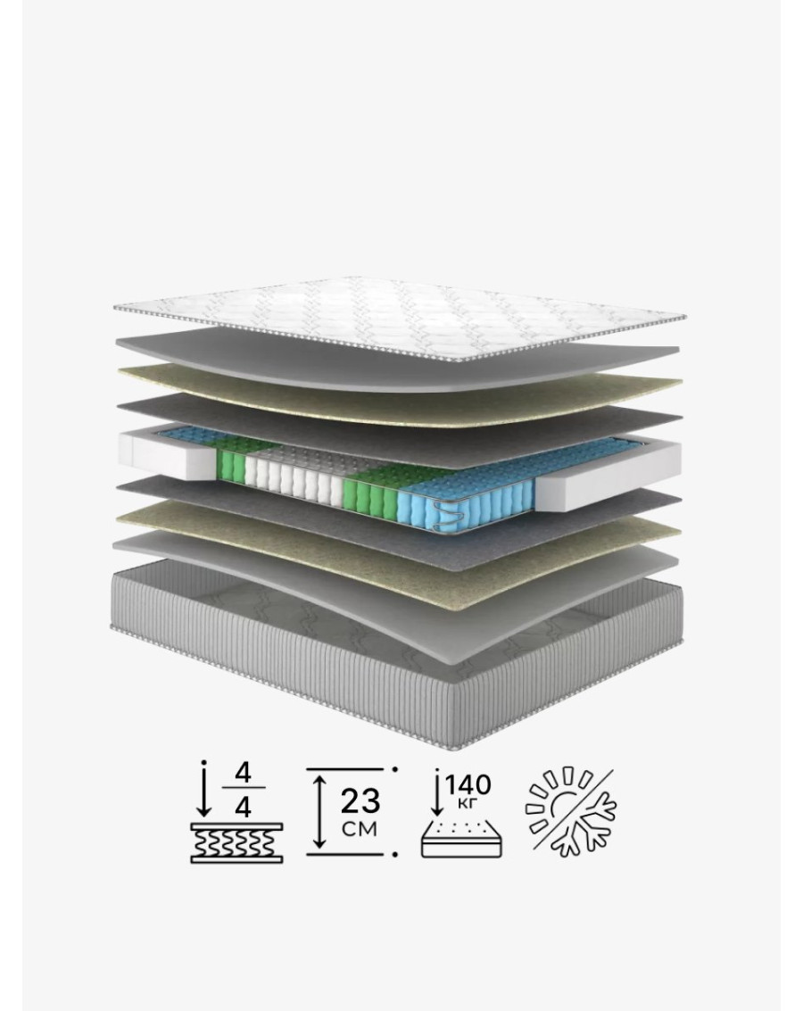 Благодаря симметричной жесткости (4/4) матрас идеально подойдет любителям плотного и устойчивого спального места.
