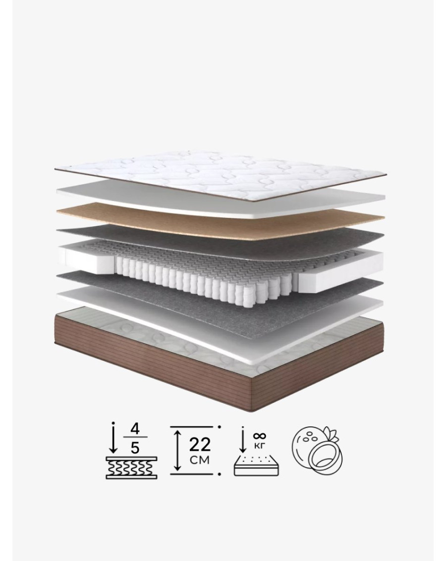 Высокая жесткость и анатомическая поддержка делают этот матрас идеальным вариантом для людей, которые ценят стабильность, ортопедический эффект и долговечность.