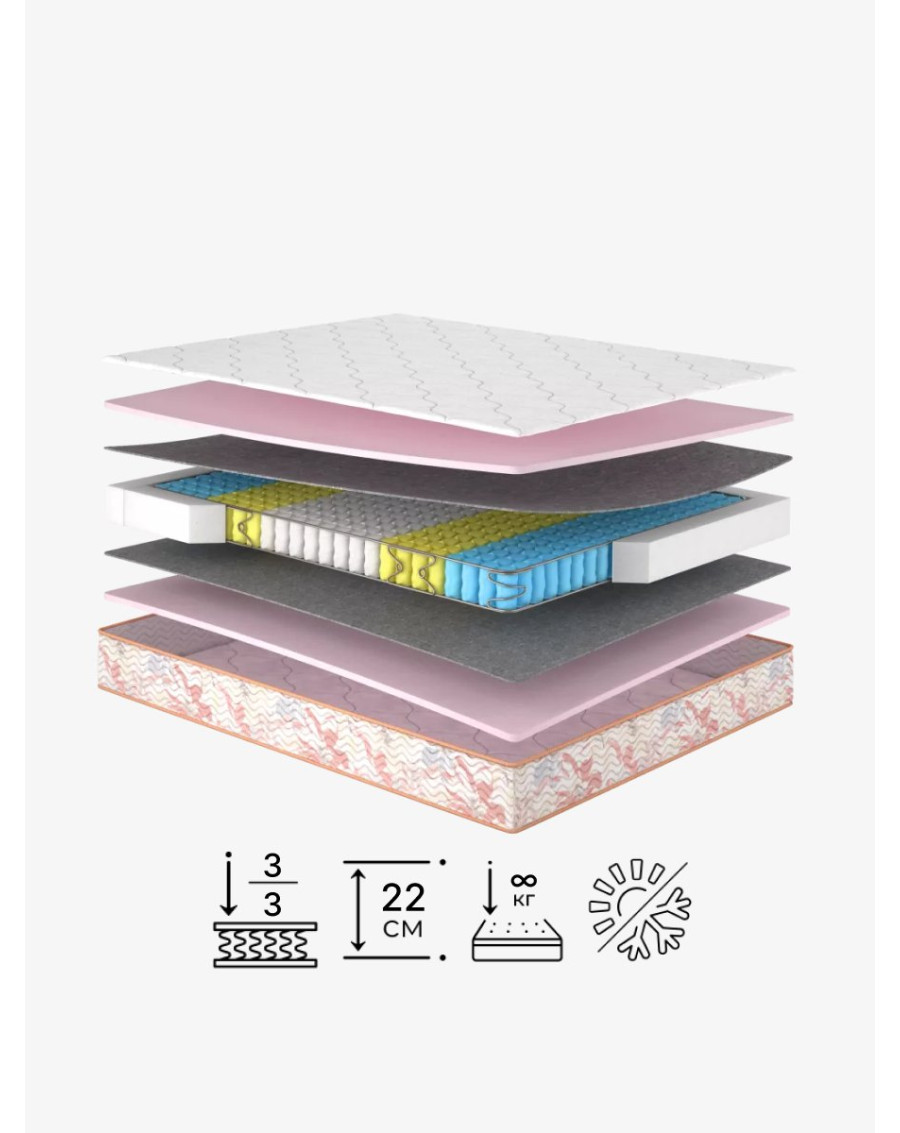 Матрас Camelia / Камелия — удачное сочетание надежности, комфорта и продуманной эргономики. Подходит тем, кто ищет сбалансированную поддержку и долговечность без лишней жесткости.