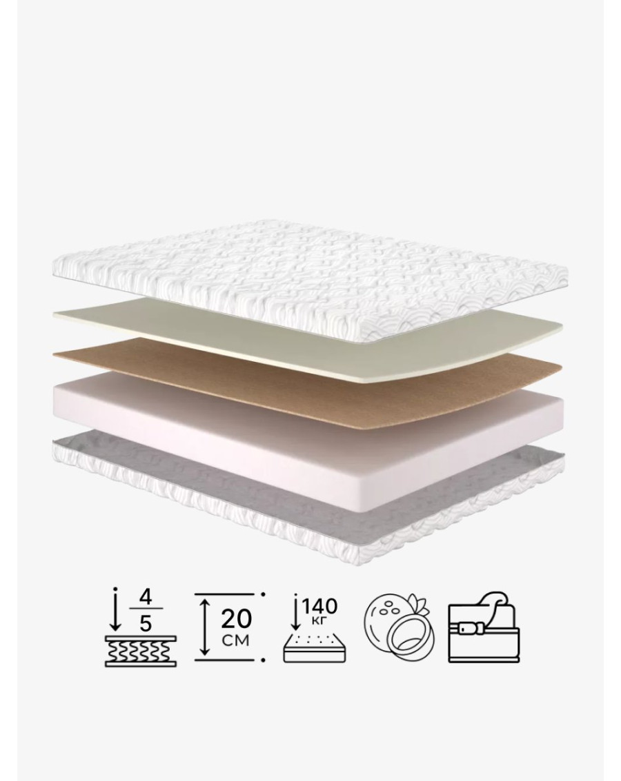 В основе — сочетание Air Foam и натуральной кокосовой койры, что обеспечивает идеальный баланс упругости, ортопедической поддержки и долговечности.