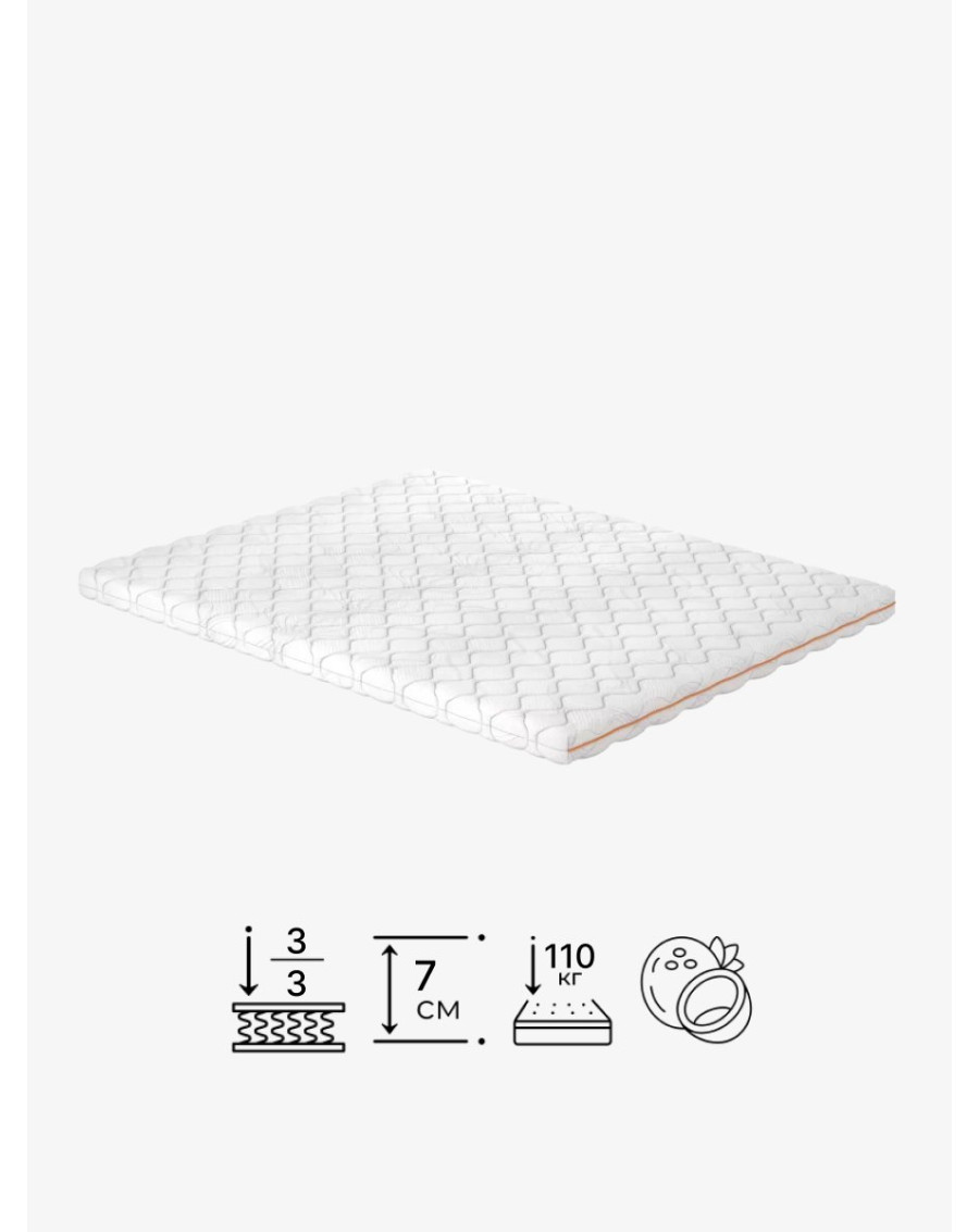 Traffic / Трафик — двусторонний топпер высотой 7 см, созданный на основе инновационных пен и натуральной кокосовой койры. Модель сочетает комфорт, поддержку и возможность быстро улучшить любое спальное место — диван, старый матрас или раскладушку.