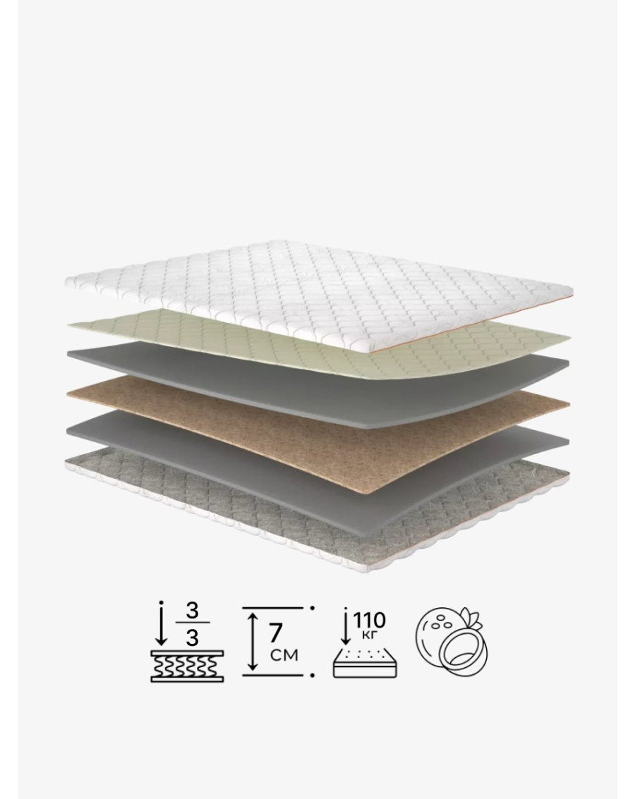 - Cocos Coir — натуральная кокосовая койра для жёсткости и долговечности.