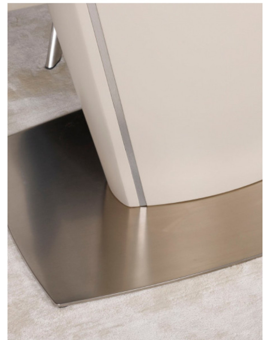 Модель отличается продуманной формой столешницы со скругленными углами и устойчивым основанием из нержавеющей стали с трапециевидной опорой.