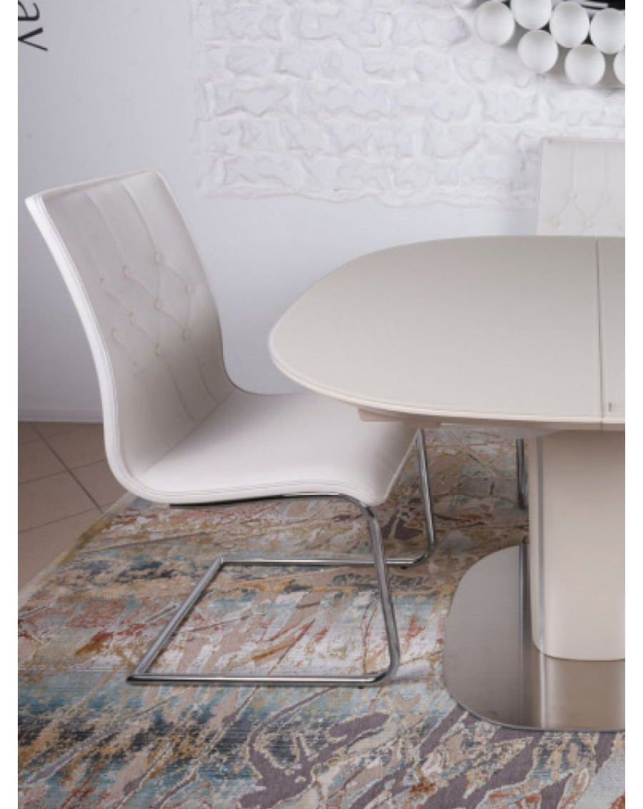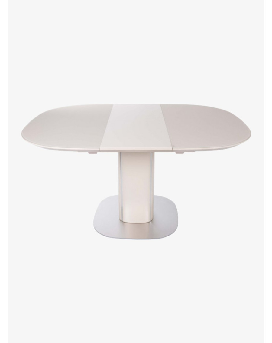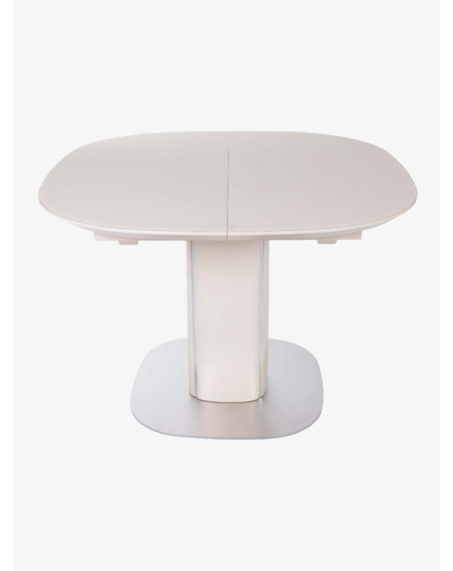 Благодаря раздвижному механизму длина стола увеличивается на 40 см, что удобно для приема гостей. Опора из МДФ с металлическими декоративными вставками подчеркивает современный дизайн и обеспечивает устойчивость конструкции.