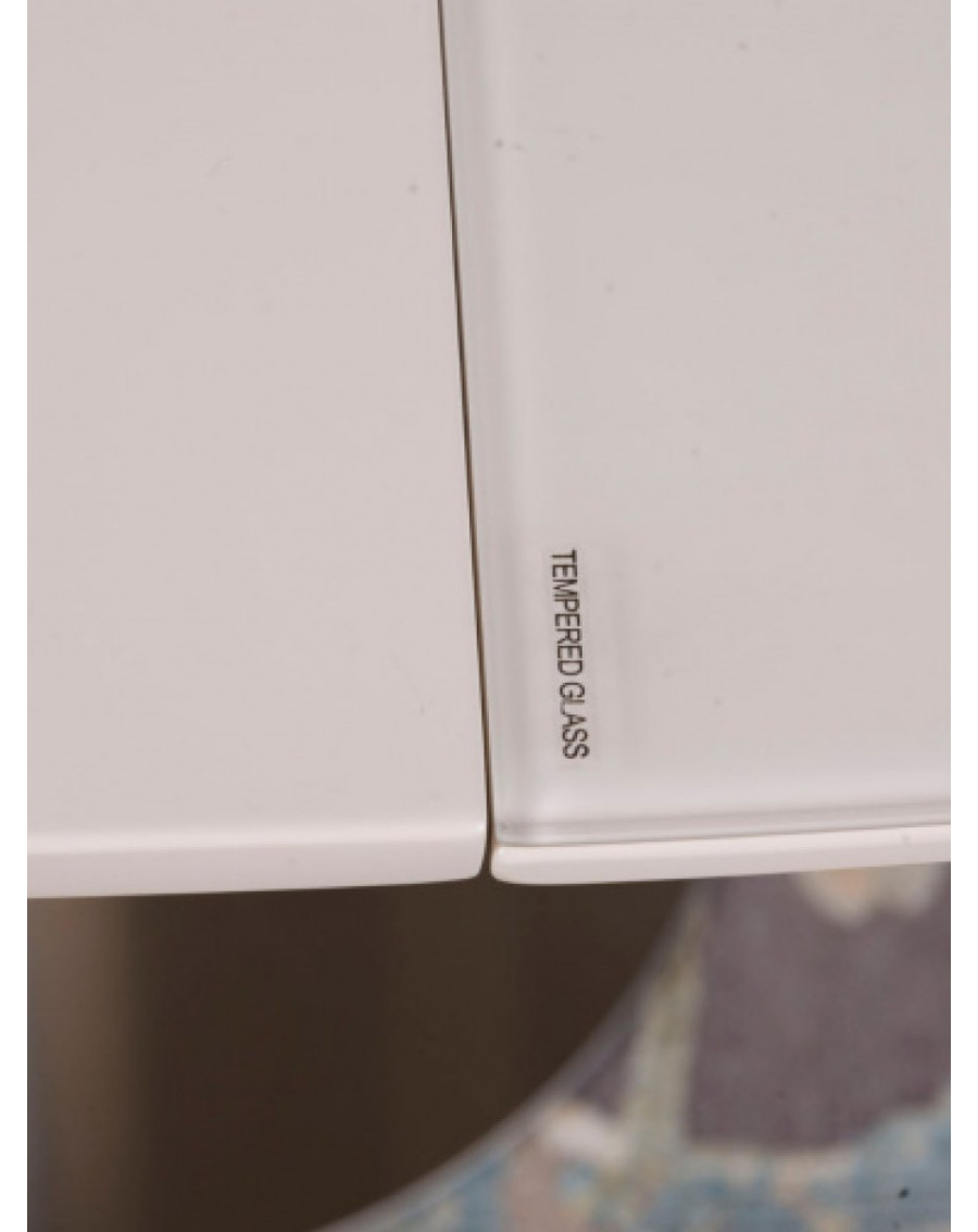Закругленные края столешницы повышают безопасность и добавляют интерьеру визуального уюта. Столешница из МДФ и матового закаленного стекла отличается устойчивостью к износу, проста в уходе и сохраняет аккуратный внешний вид при ежедневной эксплуатации.