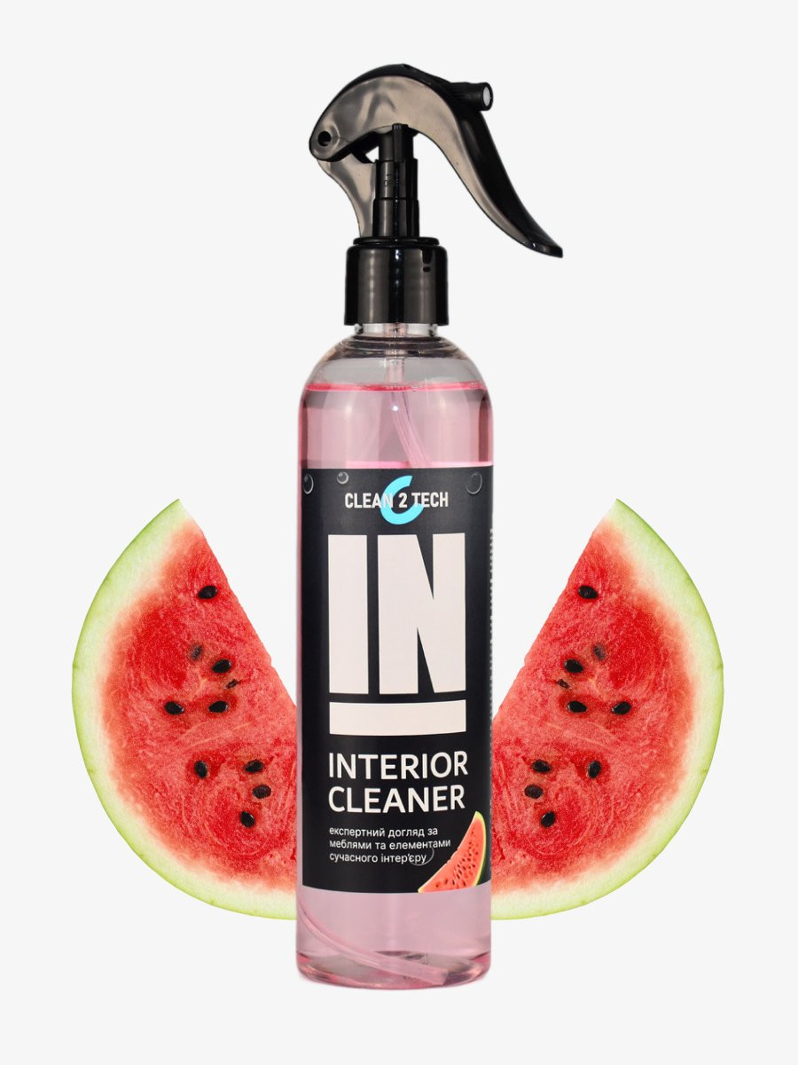 Interior Cleaner CLEAN2TECH Арбуз — универсальное средство для ежедневного ухода за мебелью, фасадами, стеклянными и металлическими поверхностями, которое эффективно удаляет пыль, отпечатки пальцев и легкие жировые пятна, не оставляет разводов и сохраняет блеск и первоначальный вид вашего интерьера.