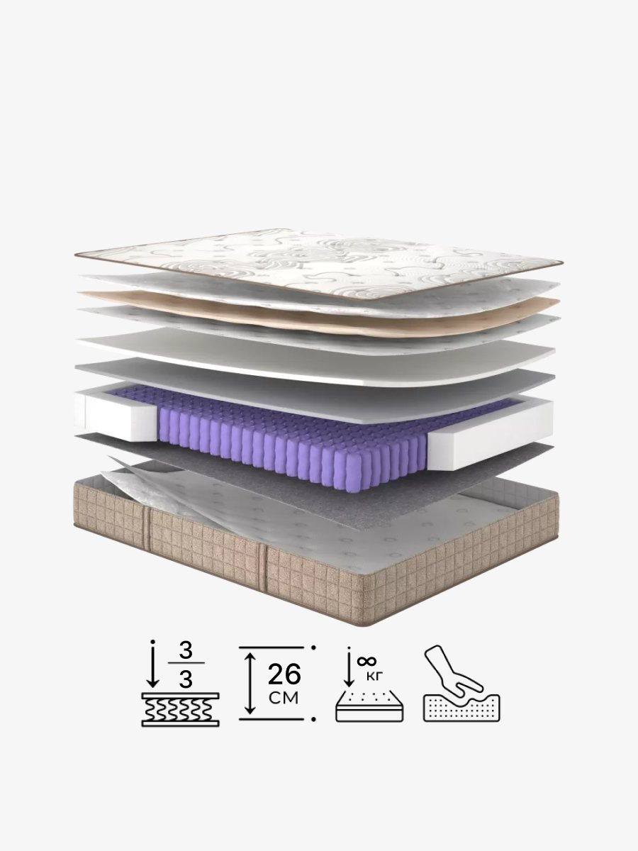 Матрас адаптируется к движениям тела, снижает нагрузку на ключевые зоны и сохраняет устойчивость по всей поверхности.