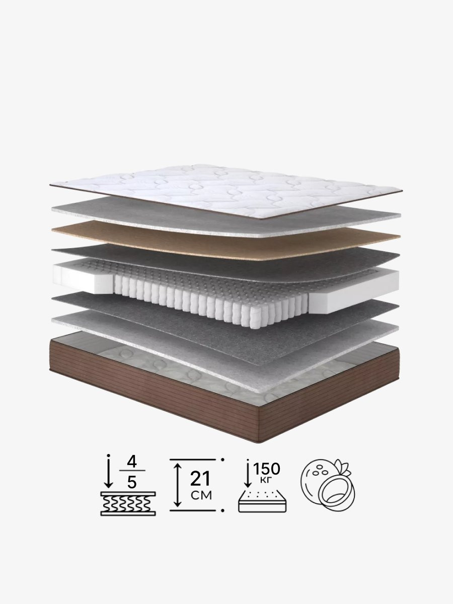 Матрас Fredo от производителя Matroluxe — это двусторонняя жесткая модель для тех, кто предпочитает максимально упругую и стабильную поверхность для сна. Благодаря сочетанию кокосовой койры и независимого пружинного блока Pocket Spring Hard, матрас обеспечивает выраженный ортопедический эффект и правильную анатомическую поддержку.