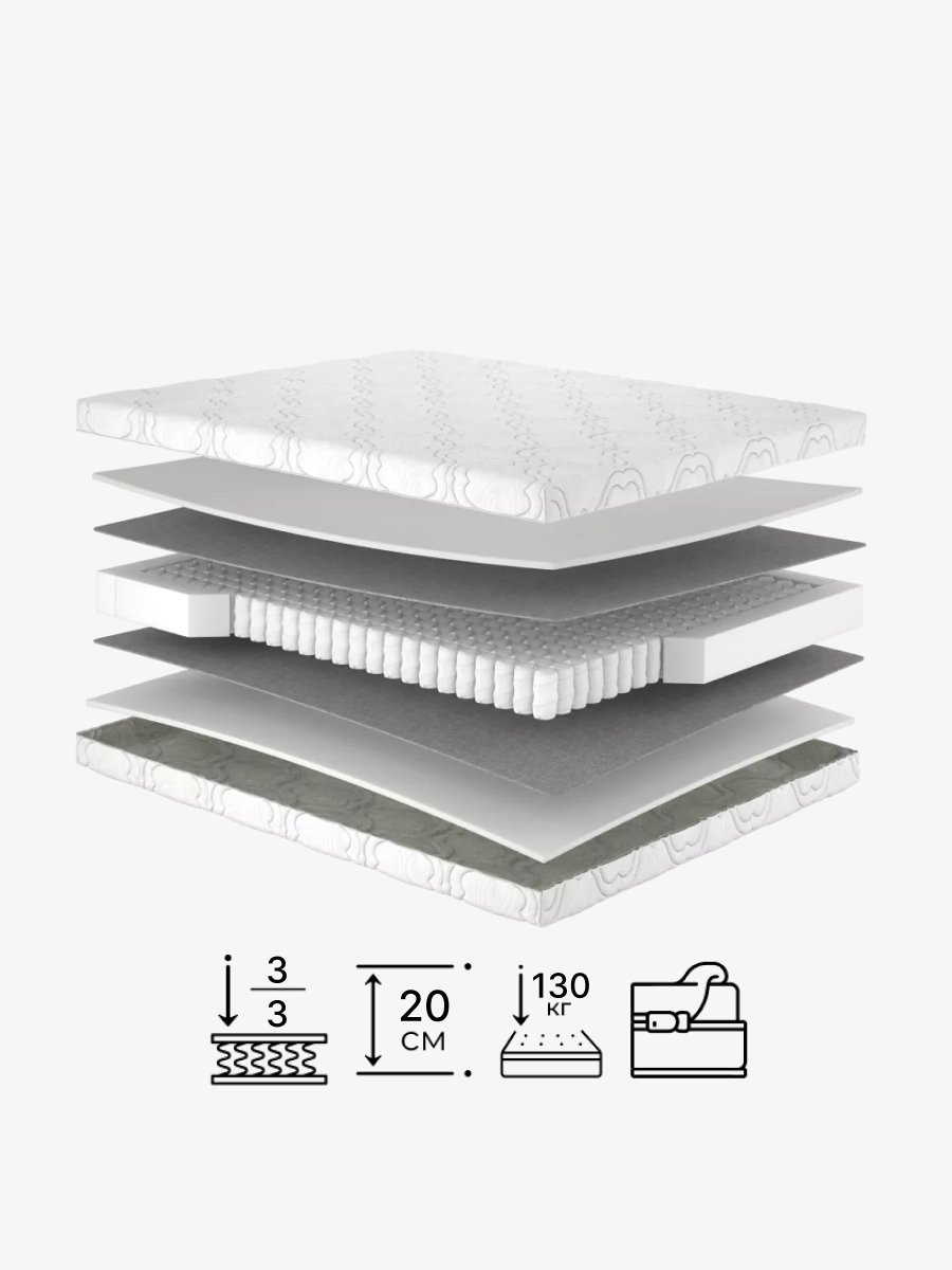 Матрас Fredo от производителя Matroluxe — это двусторонняя жесткая модель для тех, кто предпочитает максимально упругую и стабильную поверхность для сна. Благодаря сочетанию кокосовой койры и независимого пружинного блока Pocket Spring Hard, матрас обеспечивает выраженный ортопедический эффект и правильную анатомическую поддержку.