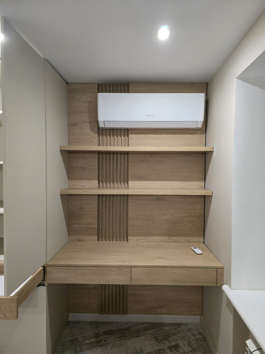 Рабочее место органично интегрировано в общую систему, создавая удобную зону для работы или учебы без перегрузки интерьера.