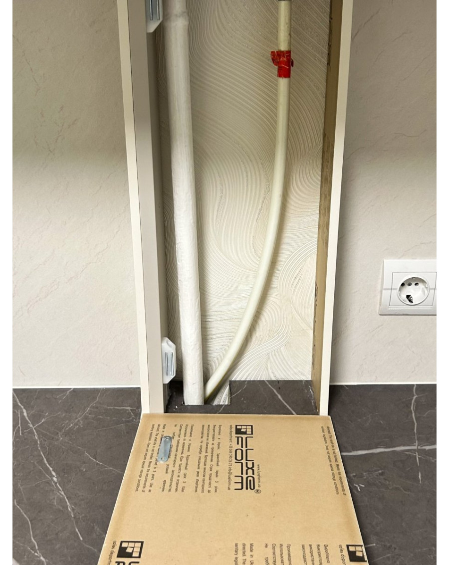 - Замаскированные трубы и счетчики ничего не портит вид.
