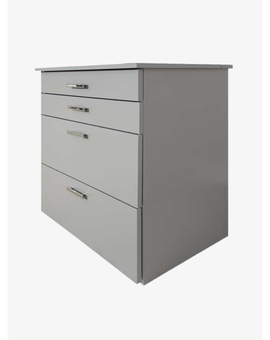 Що робить цей комод таким особливим? Перш за все, він може перетворитися на туалетний столик з пуфом та дзеркалом. Але це ще не все! Він також має відкриту полицю для косметики та прикрас, а також висувні полички на телескопах, що дозволять зручно організувати всі необхідні речі. Але найулюбленішою фішкою цього комода є пуф, який виїжджає на колесиках, має м'яке сидіння та потаємне місце для зберігання.