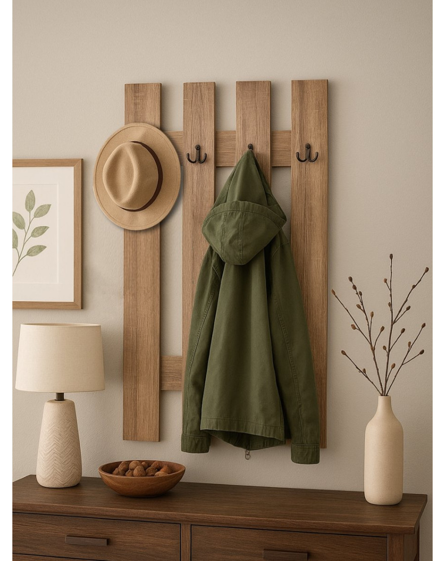 Ідеальне рішення для компактного та функціонального зберігання верхнього одягу у передпокої. Вішалка "Сонома" з 4 гачками підходить для маленьких та середніх коридорів, забезпечуючи зручність та порядок. Бежевий відтінок вішалки легко поєднує з будь-яким інтер'єром, надаючи приміщенню затишку та стиль.