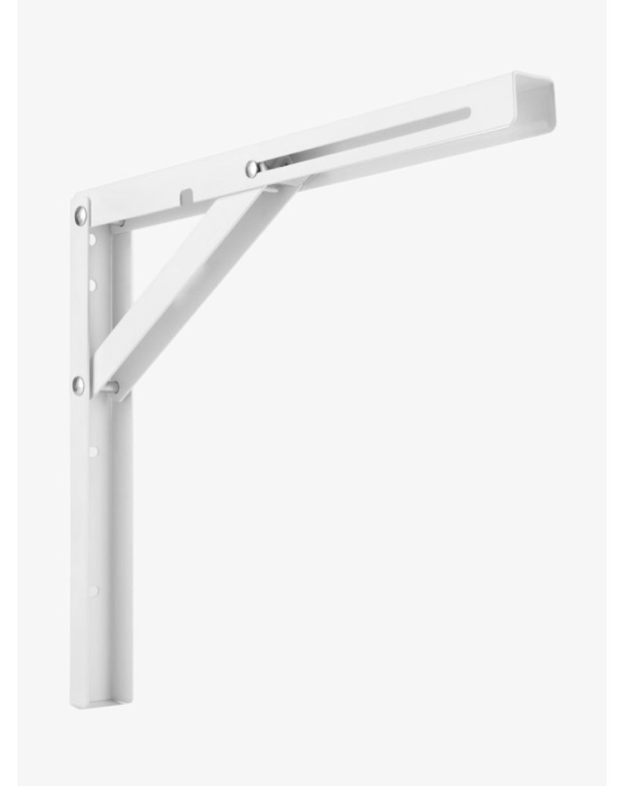 Завдяки вбудованому фіксатору, полиця або стільниця надійно утримується у горизонтальному положенні, а при необхідності легко складається, звільняючи місце. Такий тип кронштейнів ідеально підходить для кухонь, майстерень, балконів, гаражів, офісів та комерційних приміщень.