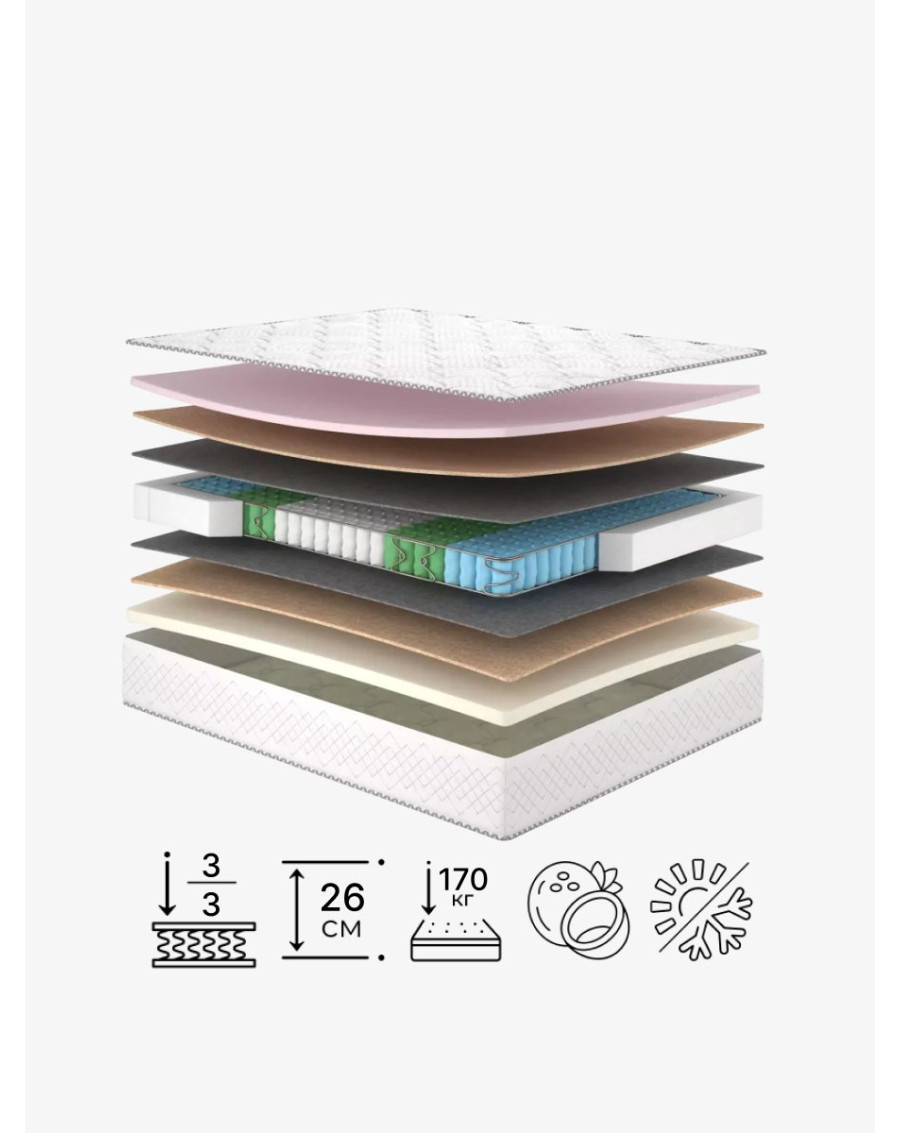 - Coconut coir — кокосова койра для пружності та додаткового ортопедичного ефекту;