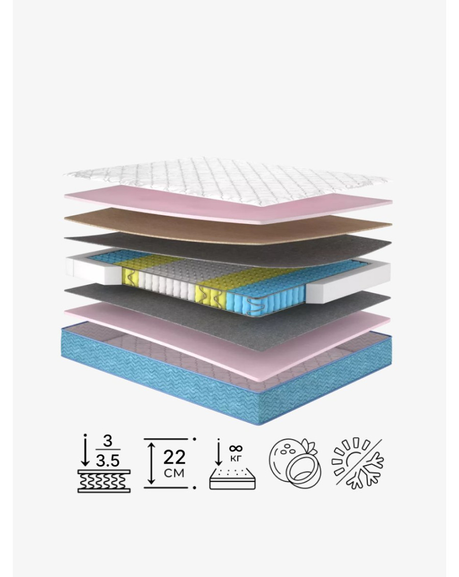 Завдяки шарам Oxigen Foam та кокосової койри, матрац зберігає пружність, не втрачає форму і сприяє рівномірному розподілу навантаження. Опція «зима/літо» та шар натуральної вовни створюють комфортний мікроклімат у будь-яку пору року, а система Butterfly зміцнює краї та продовжує термін служби виробу.