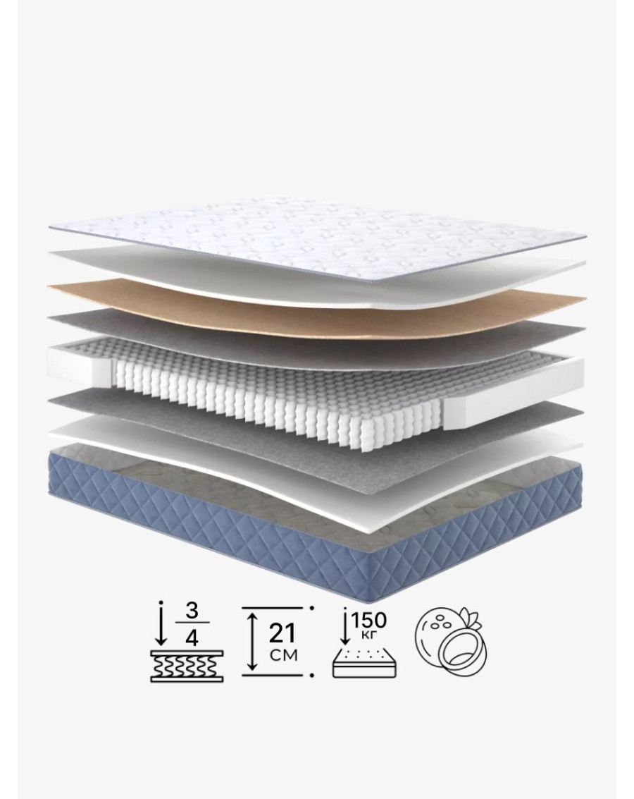 В наполнении — пена, термовойлок (Thermofiber) и натуральная кокосовая койра, которая придаёт матрасу жёсткость и увеличивает срок службы.