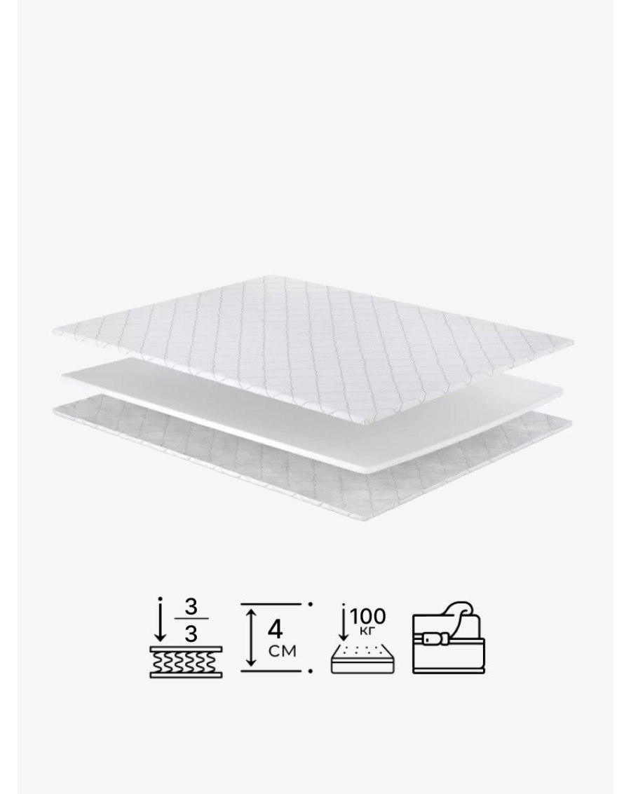 Тонкий матрац Topper-Futon 1 від Matroluxe має висоту 4 см. Легкий, компактний та функціональний, він відмінно згладжує нерівності та підвищує комфорт наявного спального місця. Основою матраца служить високоплотний пенополіуретан, який створює відчуття пружності та сприятливо впливає на м’язи під час сну. Модель не має обмежень щодо максимальної допустимої ваги.