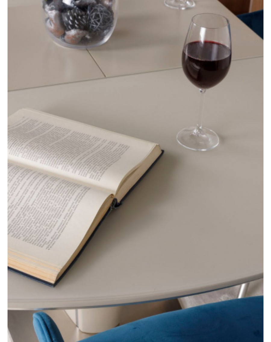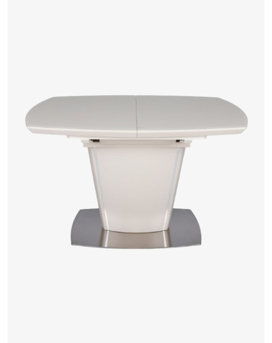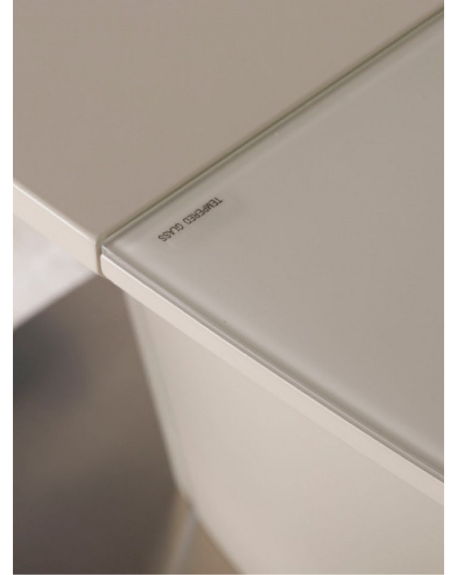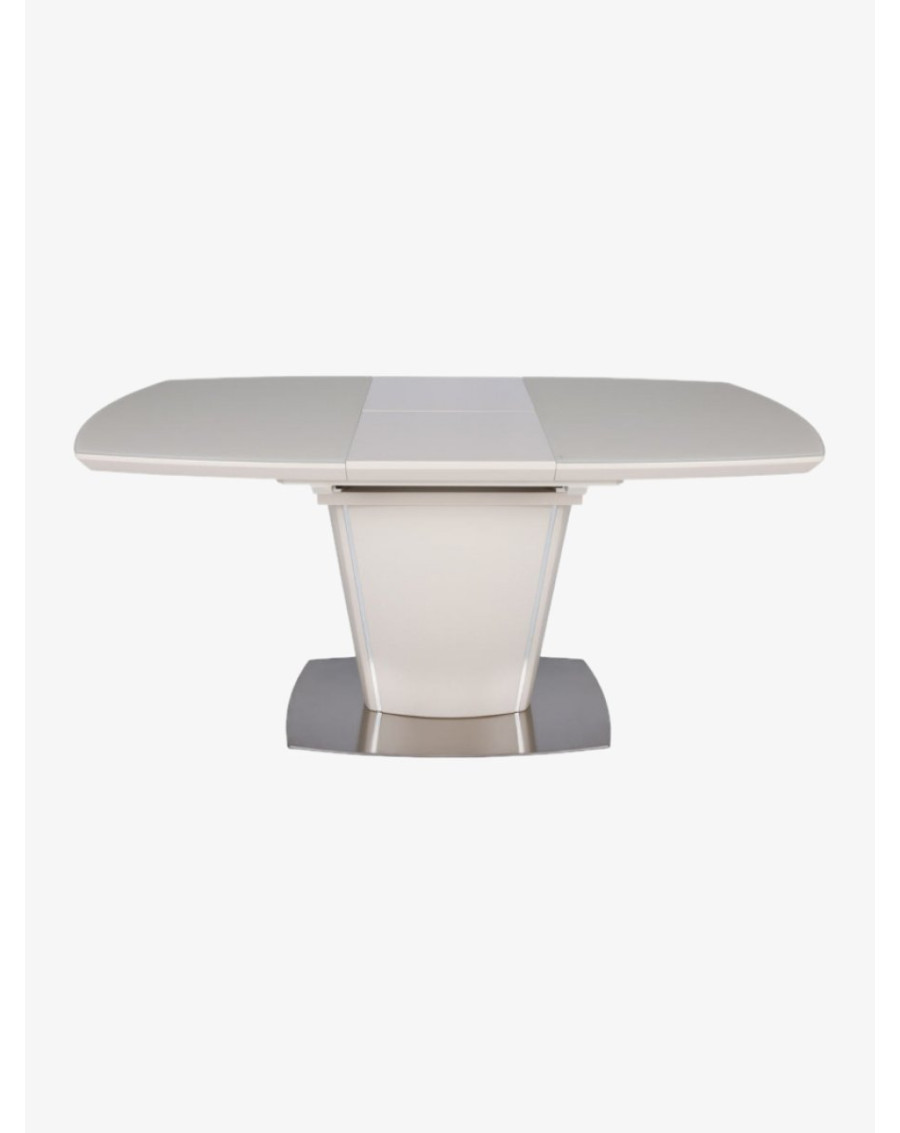 Стільниця виконана із загартованого скла з елементами МДФ, що забезпечує стійкість до подряпин, вологи та перепадів температури. Розкладний механізм дозволяє при необхідності збільшити робочу поверхню, роблячи стіл зручним як для повсякденного використання, так і для гостей.