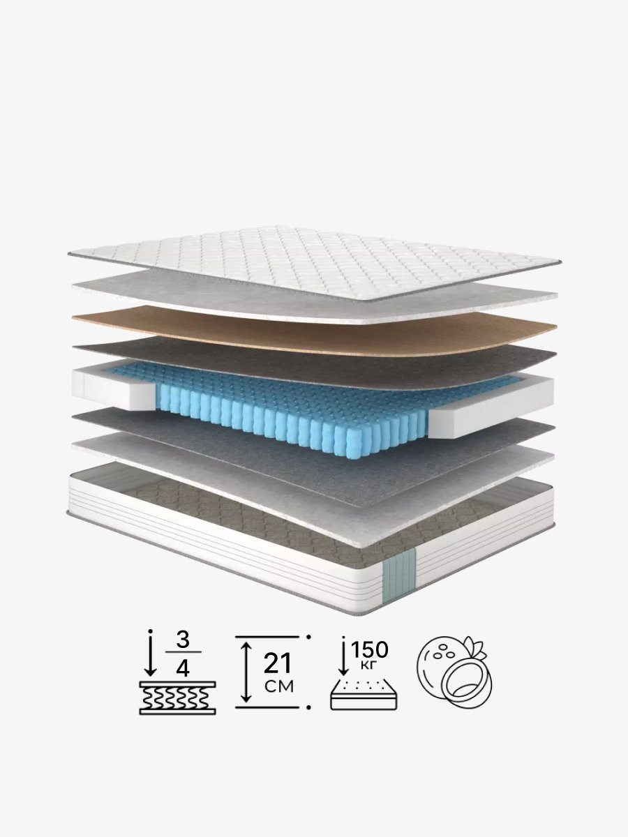 - Cocos Coir – кокосова койра для жорсткості, пружності та ортопедичних властивостей.