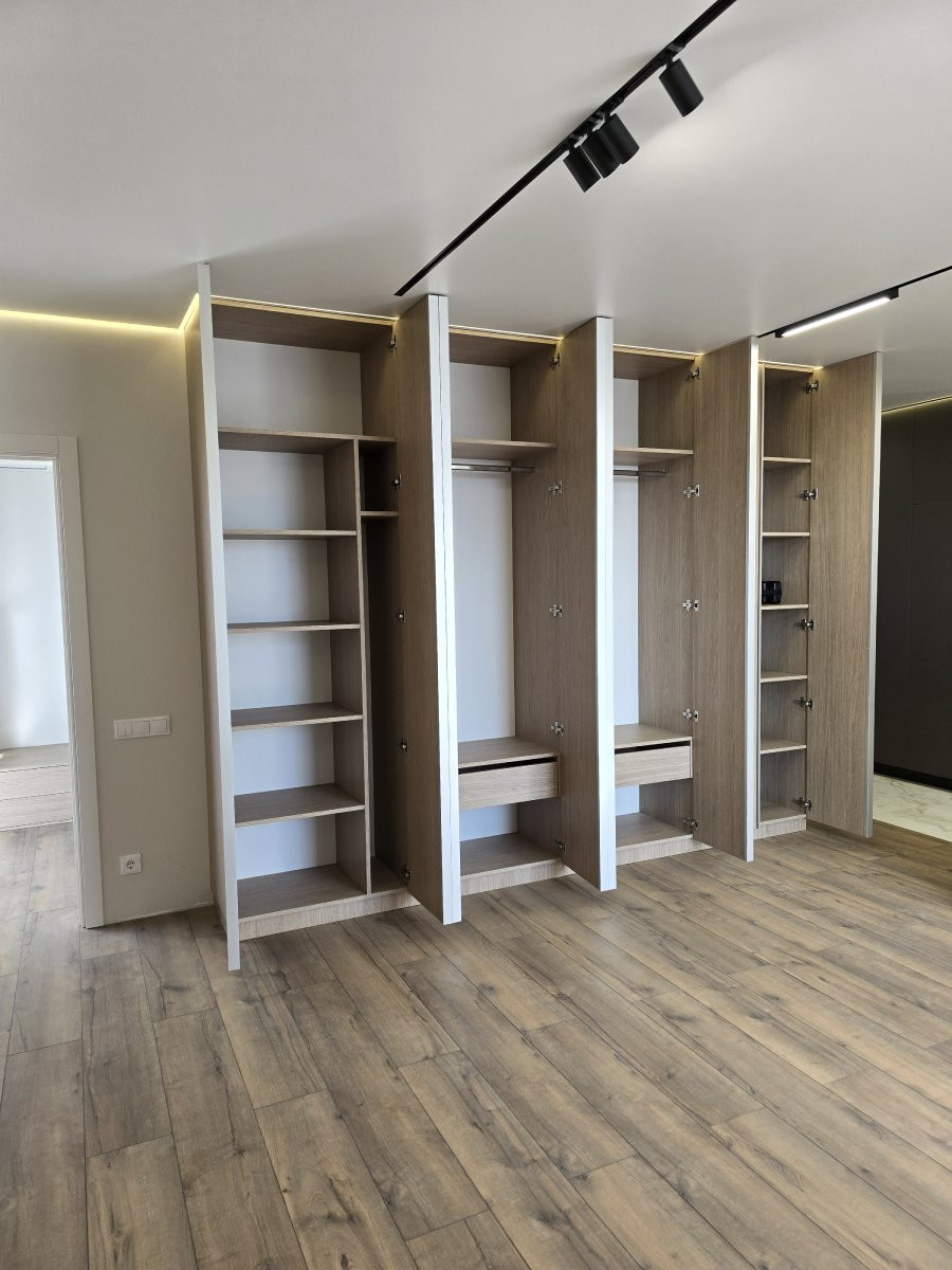 Шафа проєктується під розміри приміщення, що дозволяє максимально ефективно використовувати простір від стіни до стіни. Внутрішнє наповнення можна адаптувати під індивідуальні потреби: одяг, взуття, аксесуари або господарські речі.