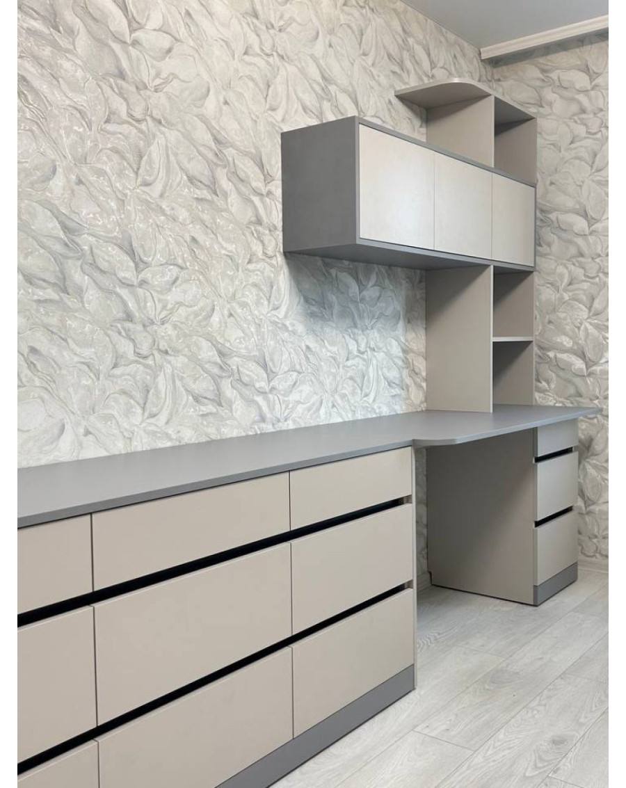 - Робоча зона: зручний стіл із шухлядками. Тут легко й уроки робити, й займатися творчістю.