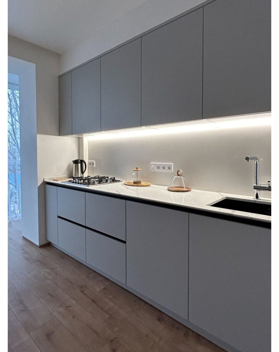 Ми вбудували холодильник у стіну, щоб він не займав зайвий простір і виглядав стильно.