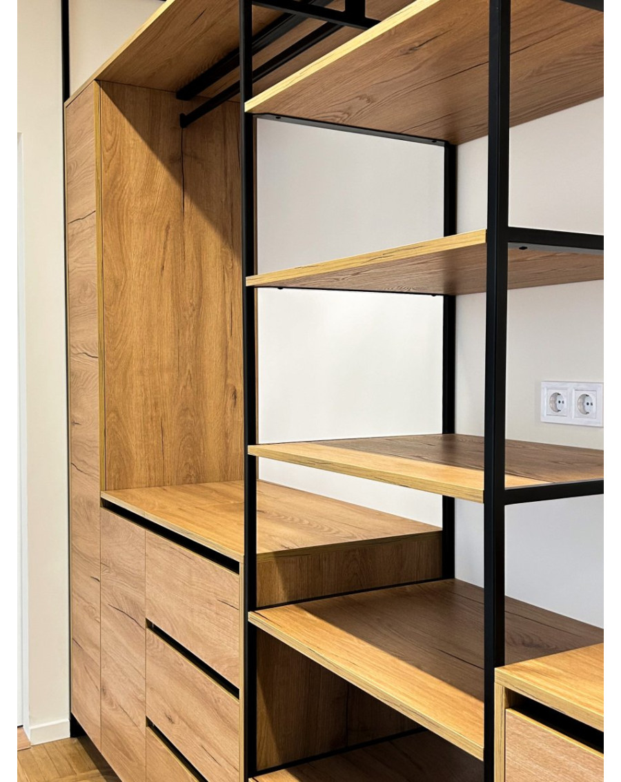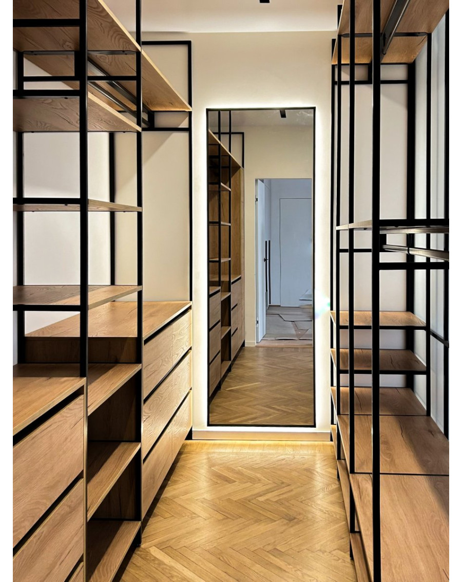 Ми створюємо гардеробні в стилі лофт — бо метал і дерево це не просто красиво, це ще й про силу та елегантність. Такі рішення для жінок, які точно знають, чого хочуть, і цінують не лише моду, але й стиль у своєму домі.