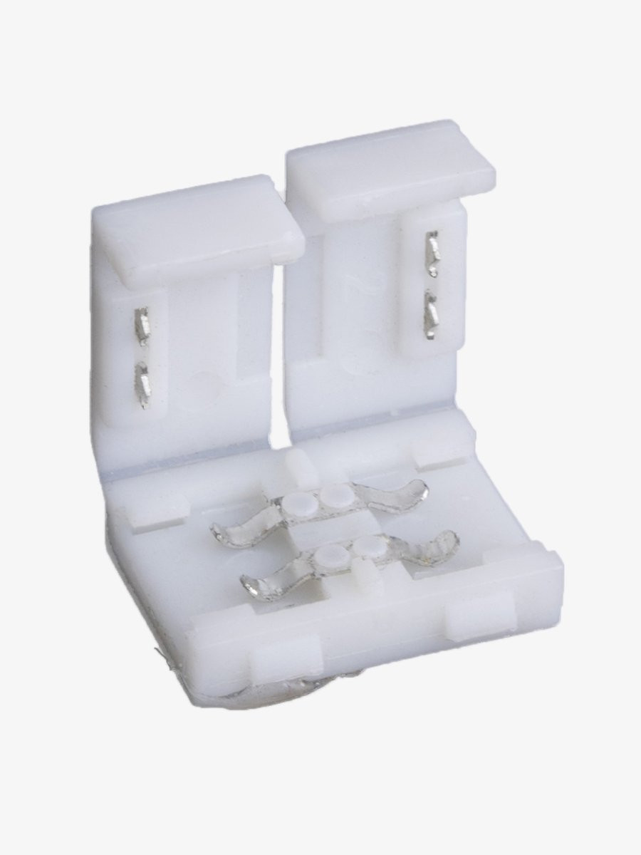 Конектор типу «зажим-зажим» — це з’єднувач для швидкого з’єднання двох світлодіодних стрічок без пайки. Він дозволяє з’єднати два відрізки LED-стрічки та продовжити лінію підсвітки.
