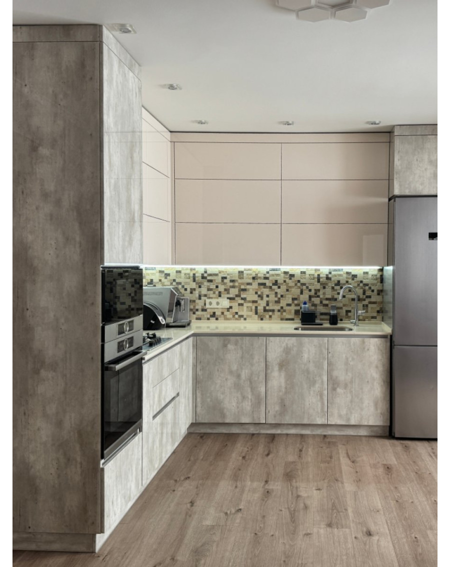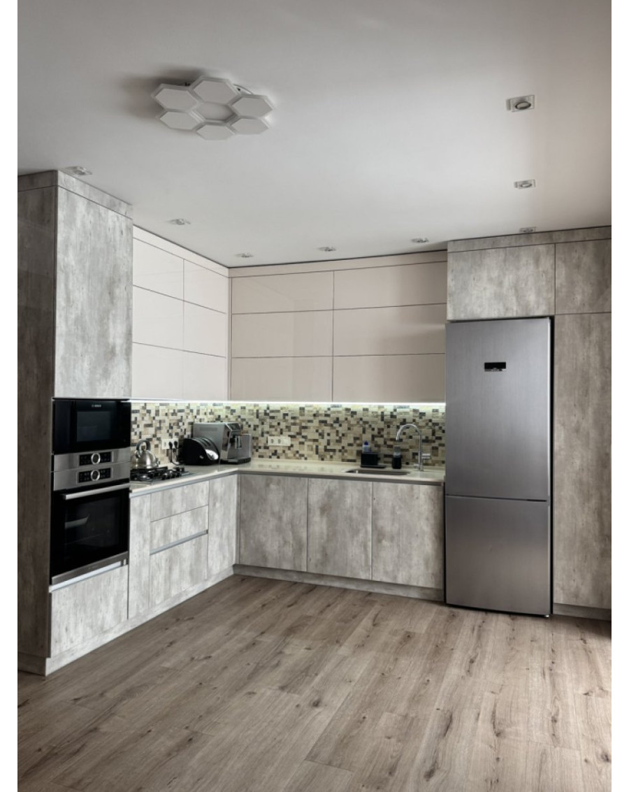 Кутова кухня у світлих тонах виготовлена із преміальних матеріалів
