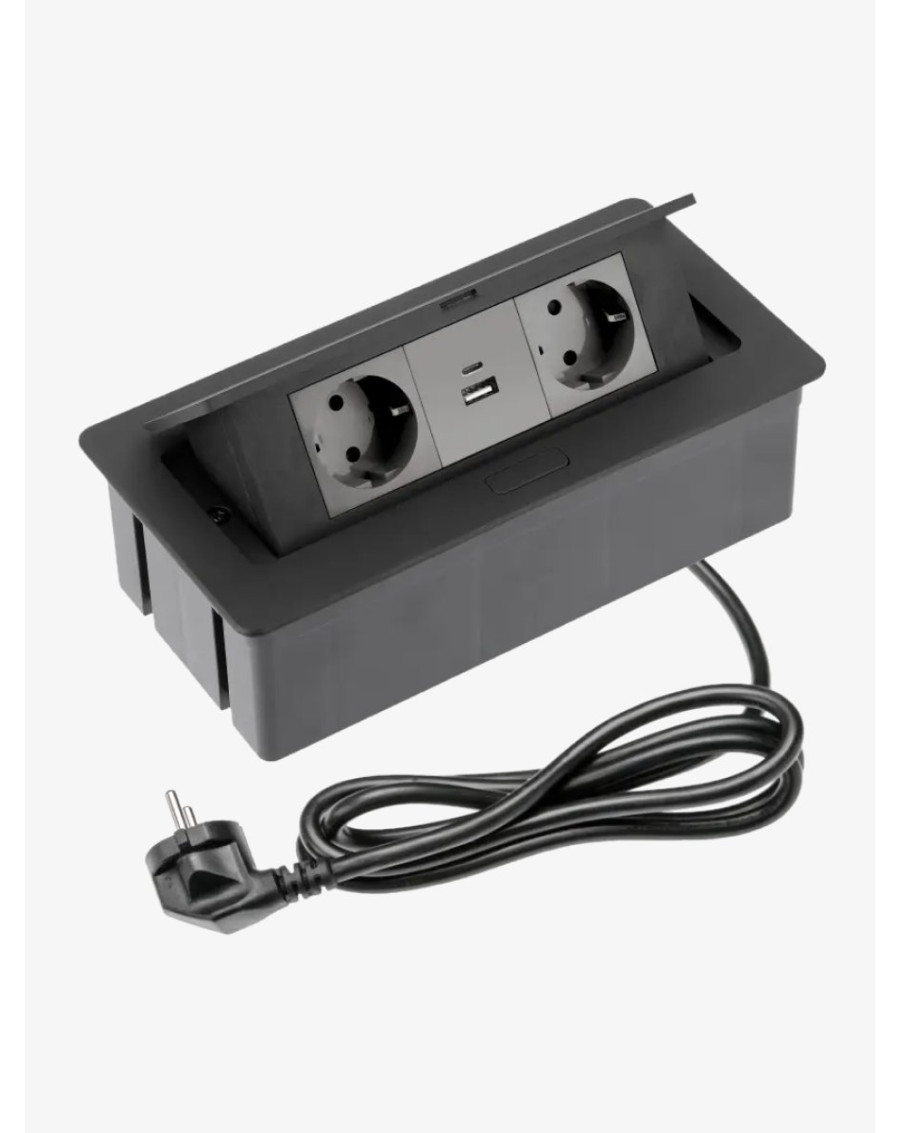 Розетка меблева на 2 гнізда USB A+C провод 1,5м з вилкою Чорна GTV AE-PBSUC2GS-20NN