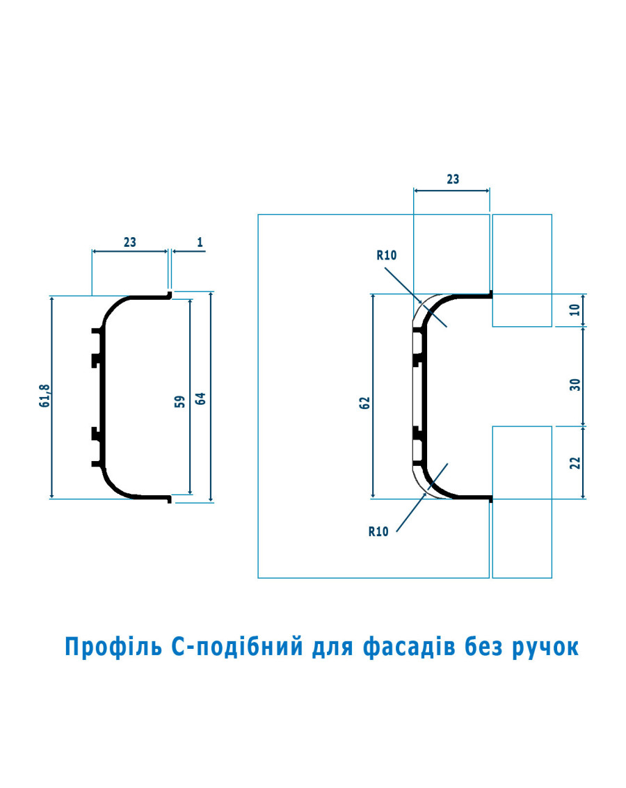 Профіль алюмінієвий ФБР C-подібний Білий 6000 мм (м/п)