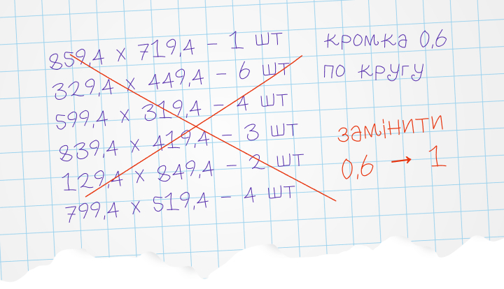 Не потрібно враховувати підрізку під кромку. Можна швидше складати креслення і працювати у чистих розмірах.